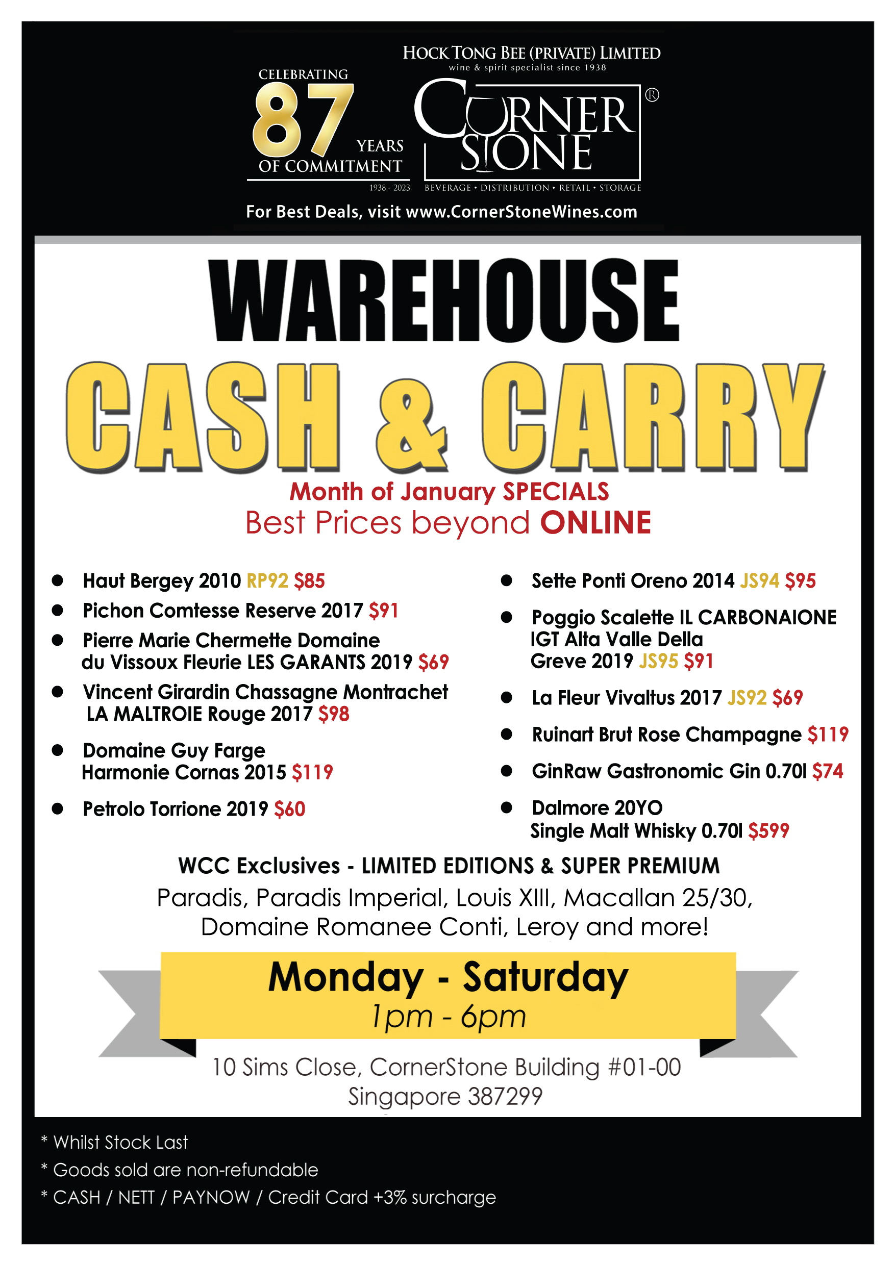 Buy Backs: Sell your wines to us for cash payment, in kind swap or on broking terms. Please ensure stock is in perfect provenance and cellared in top commercial storage since release. For a free quotation and without obligation, please email Mr Clinton Ang,