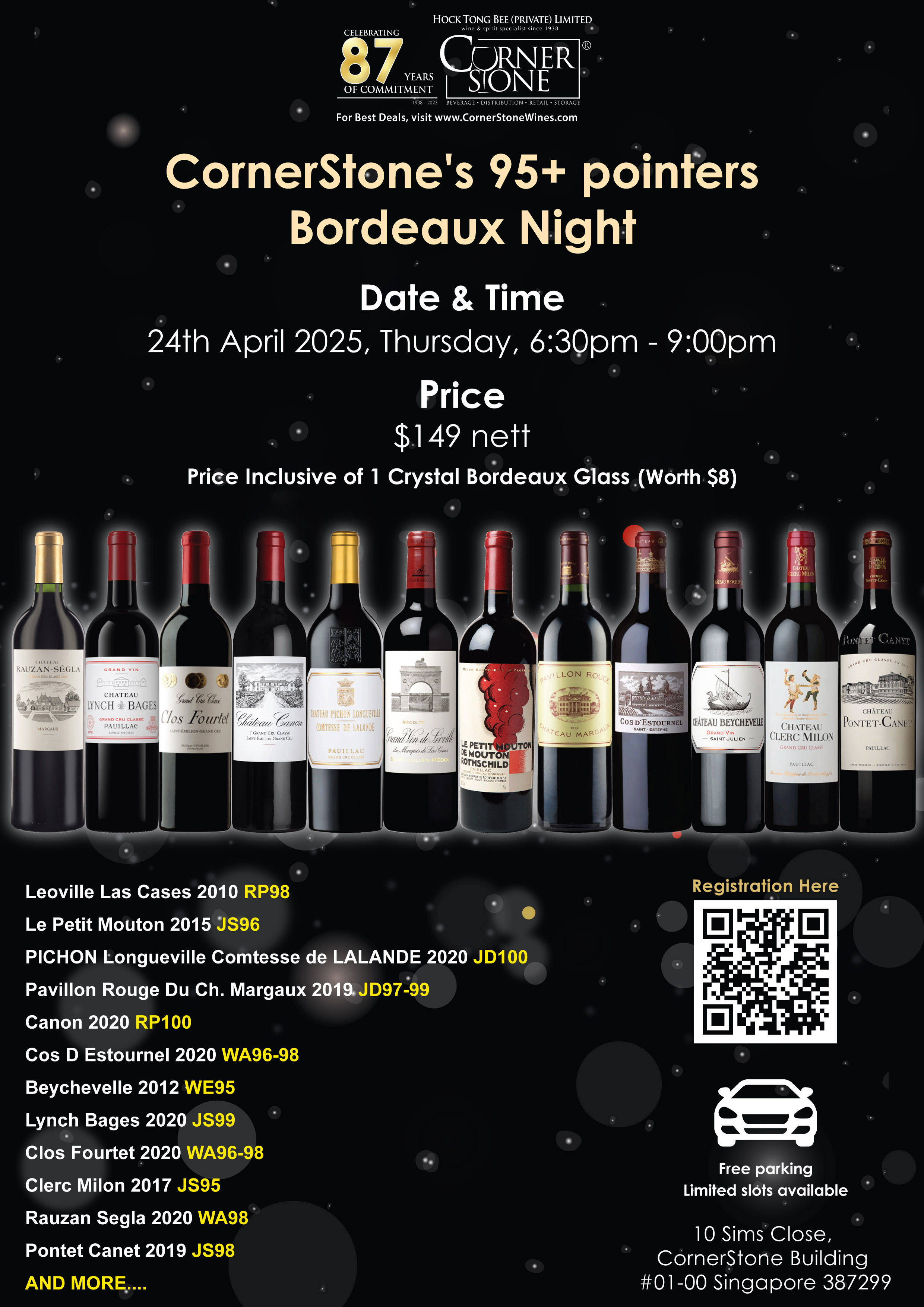 Buy Backs: Sell your wines to us for cash payment, in kind swap or on broking terms. Please ensure stock is in perfect provenance and cellared in top commercial storage since release. For a free quotation and without obligation, please email Mr Clinton Ang, mdir@cornerstonewines.com